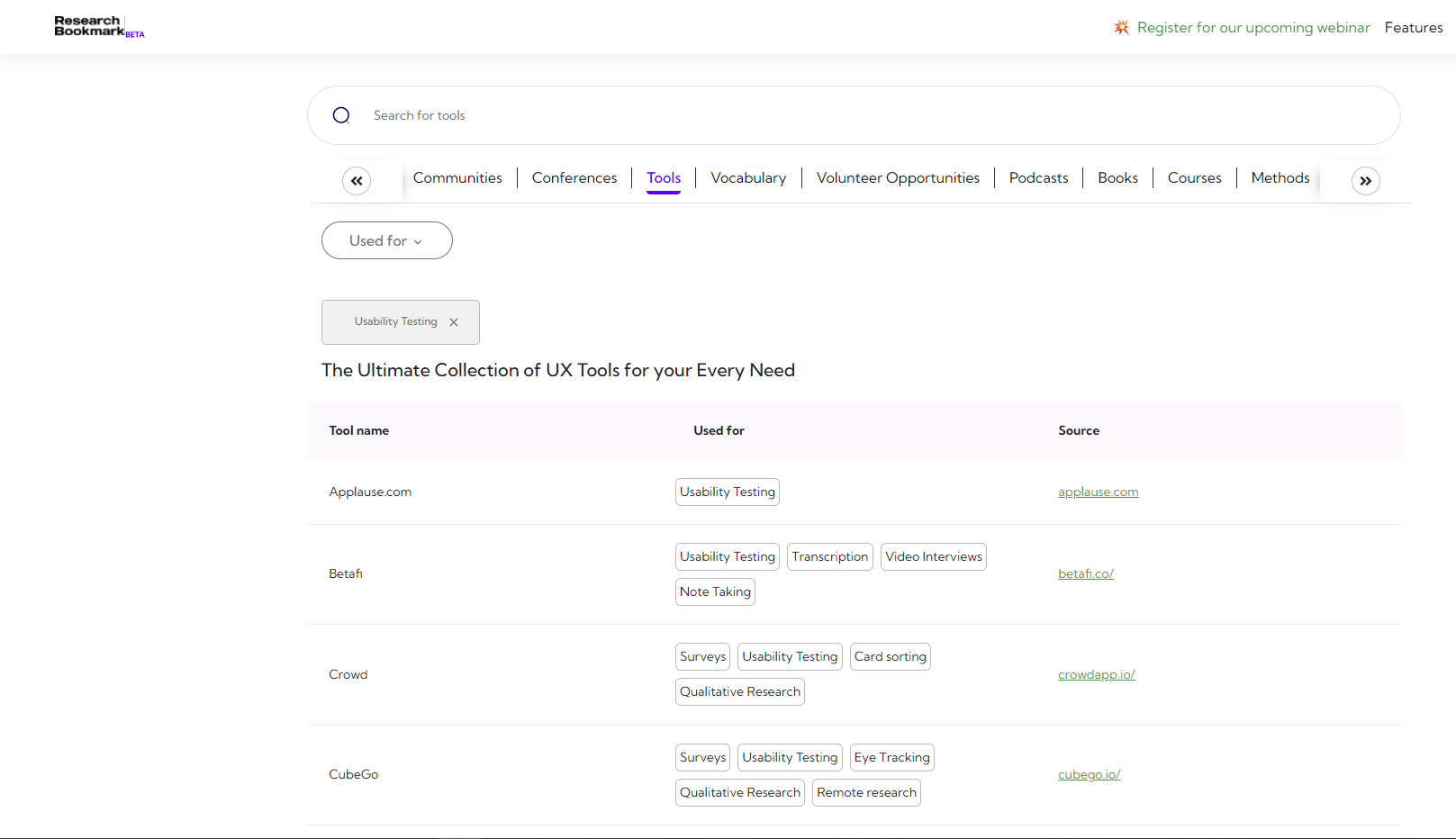 Using usability testing and survey as a use case, you can filter through our collection of UX Tools to discover the tools you can use for your usability testing and survey purposes.