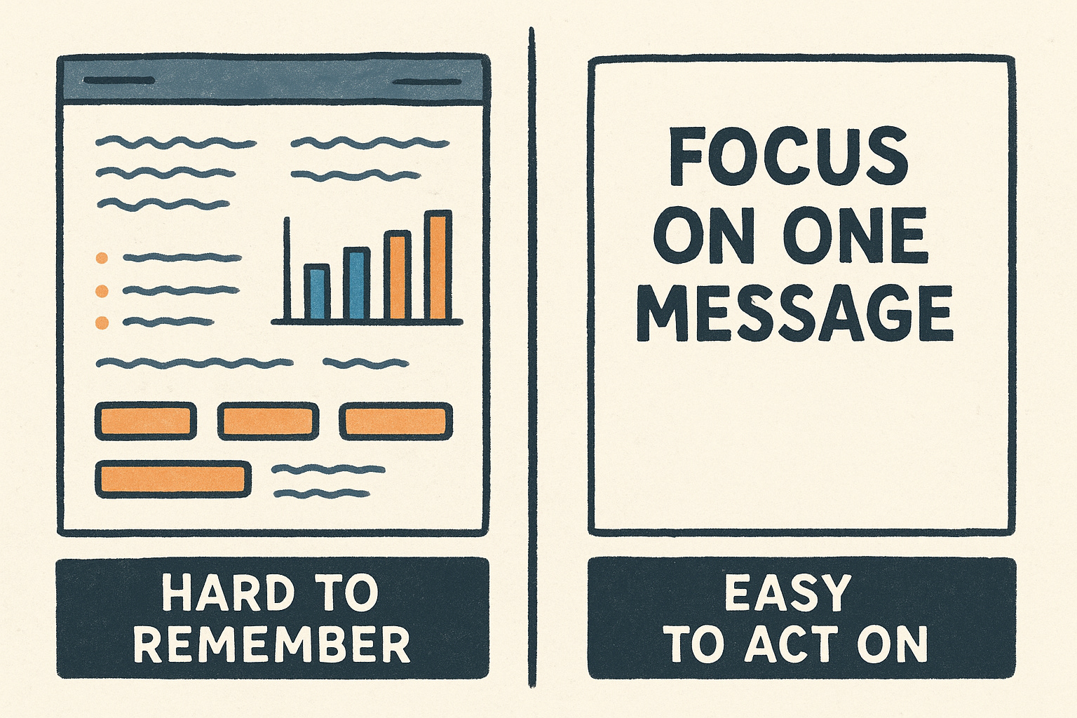 If you can’t explain the insight in one simple sentence, the stakeholder will not remember it.Show the impact directly.