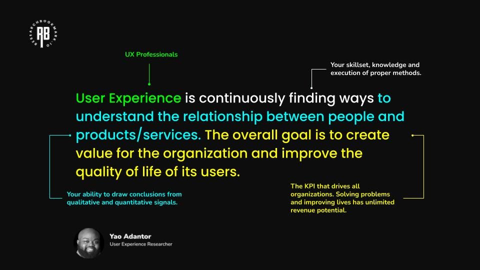 You - Your personal traits and commitment to staying up-to-date with the latest trends are important in delivering high-quality UX work.