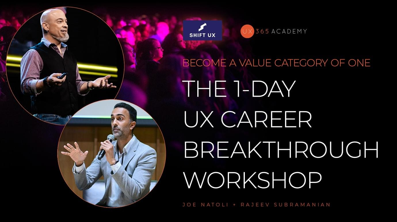 In one action-packed day, UX veterans Joe Natoli and Rajeev Subramanian will help you rebuild your career system from the ground up.